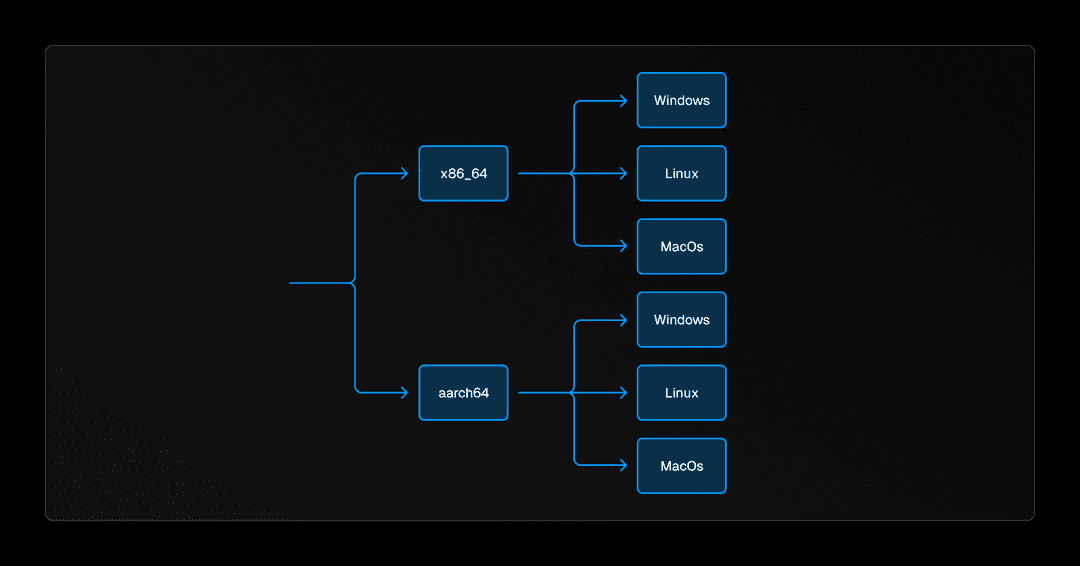 Generalmente, cuando escribes código y lo compilas, estás realizando una compilación nativa. Estás construyendo el código para el sistema operativo y la arquitectura de la computadora que estás utilizando actualmente. Esto funciona muy bien para el desarrollo local; compilas y ejecutas inmediatamente en tu computadora. Pero para las versiones, este proceso necesita cambiar. No podemos crear 6 máquinas diferentes para cada uno de los objetivos que soportamos. Tomaría mucho tiempo y desperdiciaría recursos informáticos, y nuestra tubería de lanzamiento está en GitHub Actions, que de todos modos no admite aarch64.