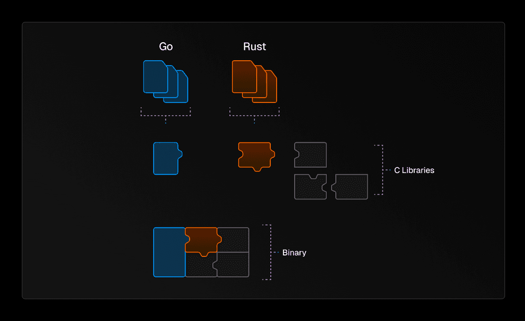Con el sándwich de Go, tuvimos un nuevo problema: ¿cómo podemos liberar un binario híbrido Go-Rust?